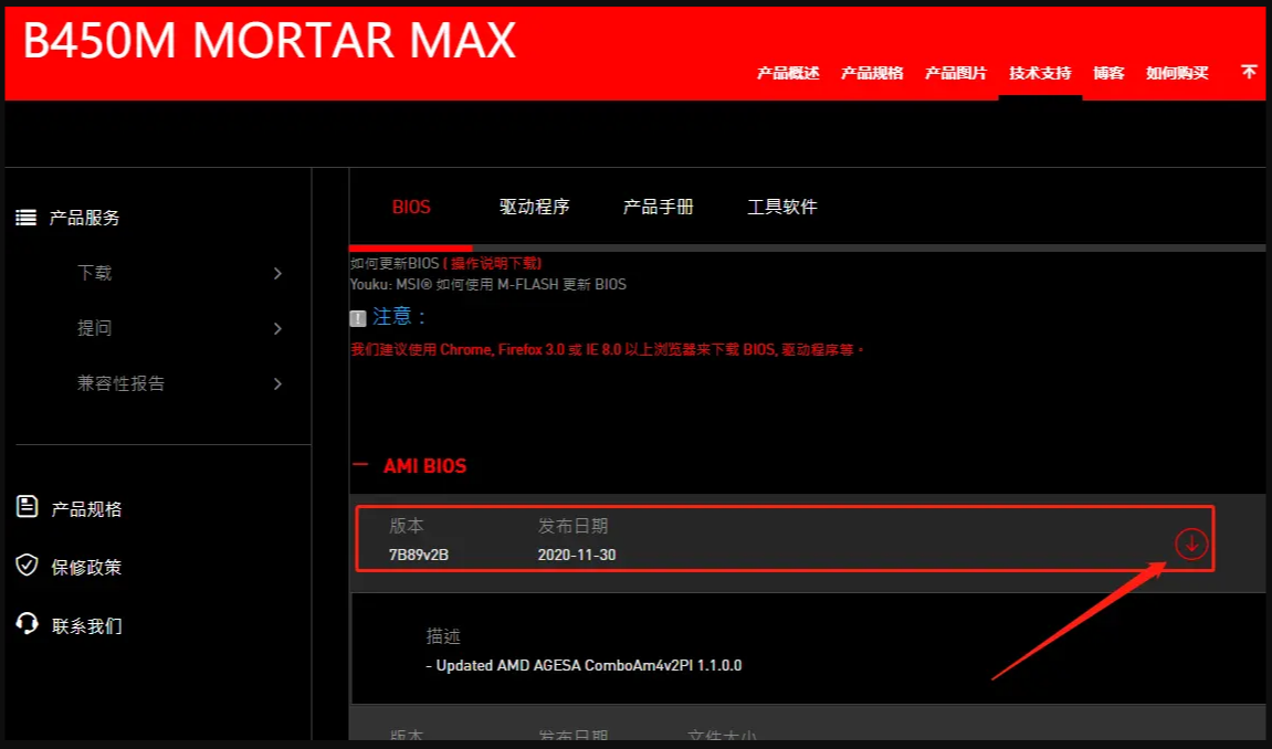 2020-12-05 微星B450M,BIOS更新,微星主板更新
