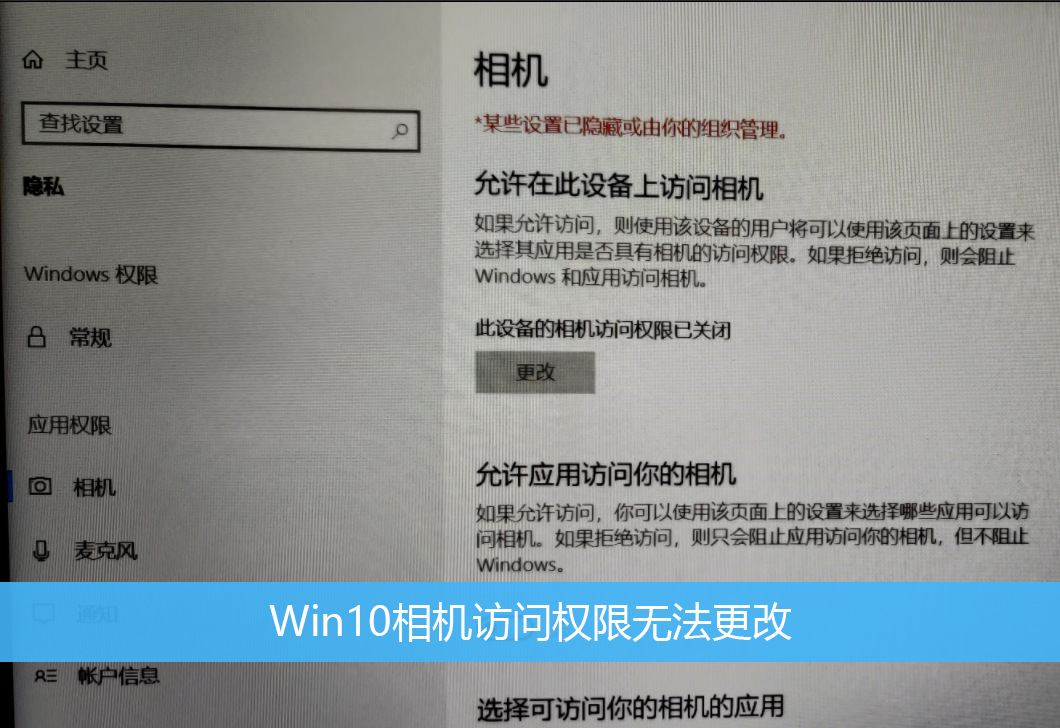 Win10相機訪問權限無法更改