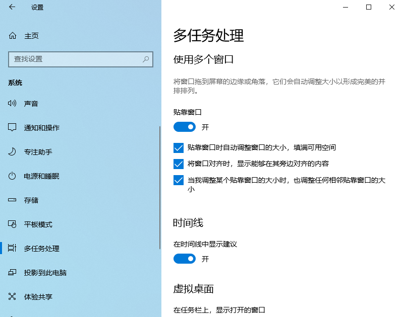 Win10多任務處理貼靠設置
