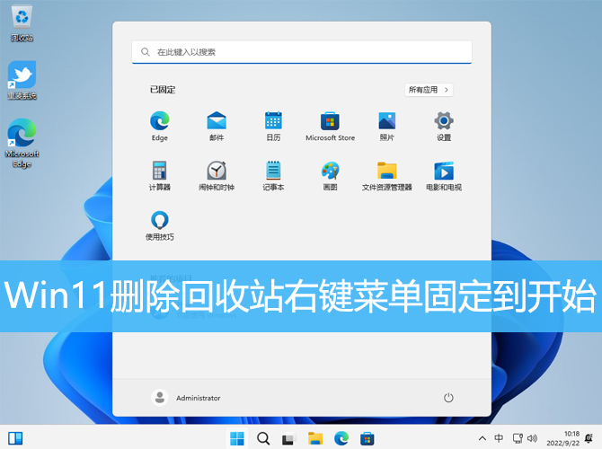 桌面右鍵點擊回收站后,右鍵菜單項會有個 固定到開始,有些Win11用戶想刪除,但是不