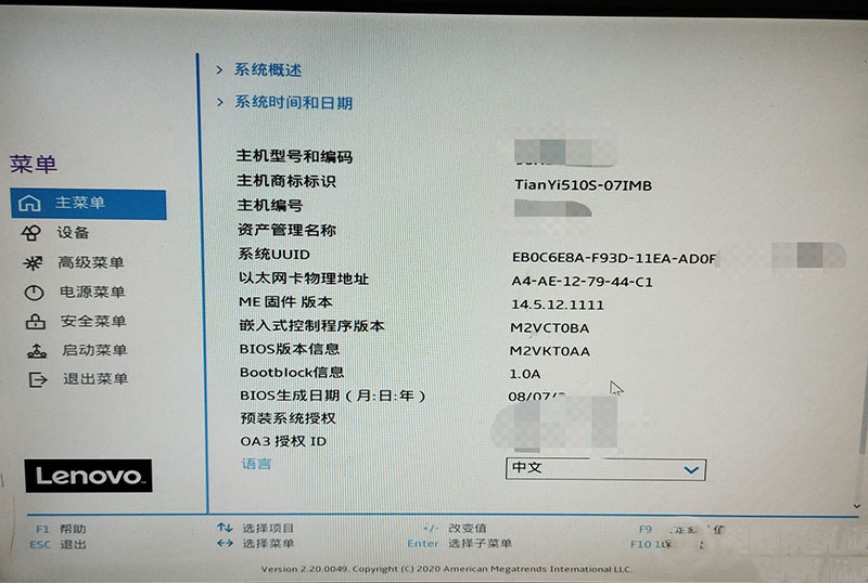 2020-03-16 聯想臺式機,win10,Bios設置