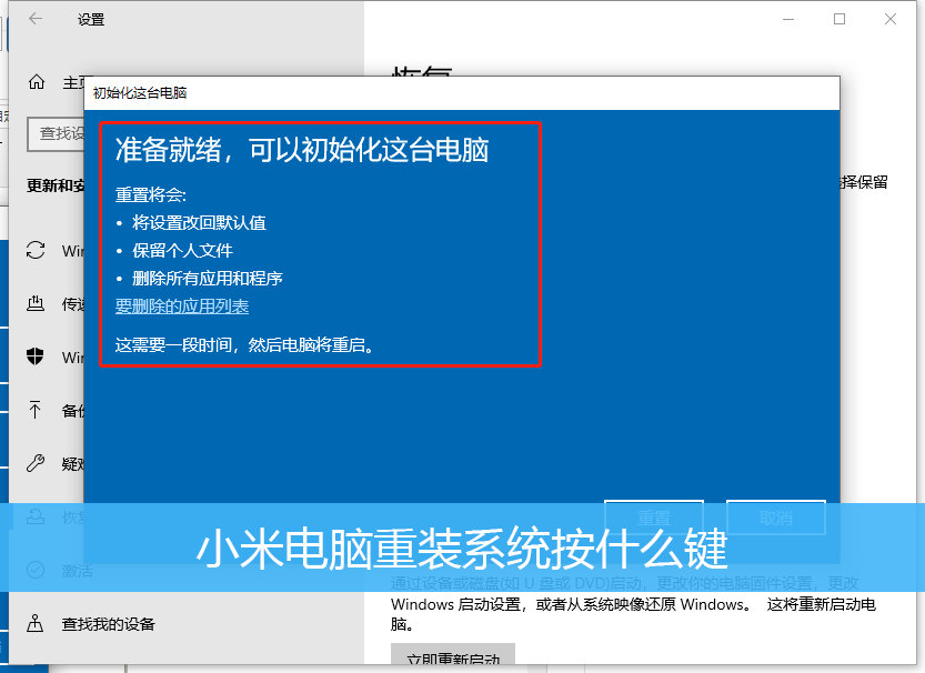 小米電腦重裝系統按什么
