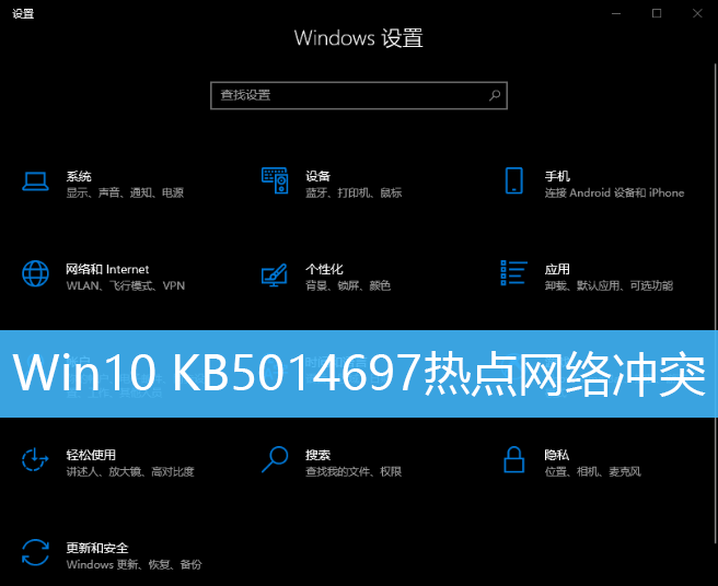 有些Win10用戶發現,更新 KB5014697后,就遇到了熱點和網絡沖突的問題,不知道怎么解決