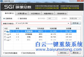 2、確定映像文件路徑是否是你下載的自帶有360軟件的系統(tǒng)文件,如果正確就點(diǎn)擊執(zhí)行。然后會提示是否將系統(tǒng)還原到C盤。點(diǎn)擊確定即可。