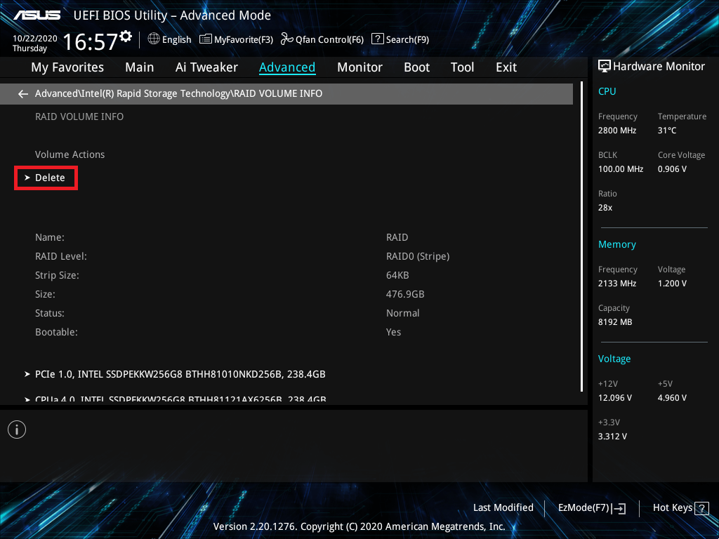 華碩主板刪除已組建RAID
