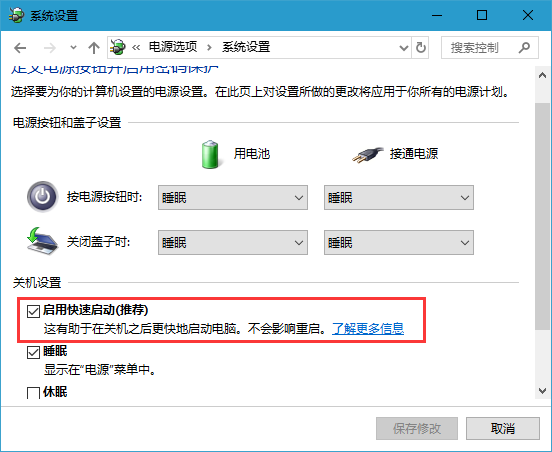 Win10電源選項(xiàng)沒有快速啟動(dòng)