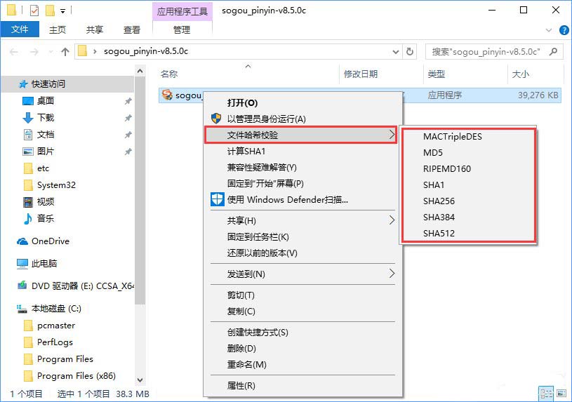 Win10右鍵菜單添加哈希校驗