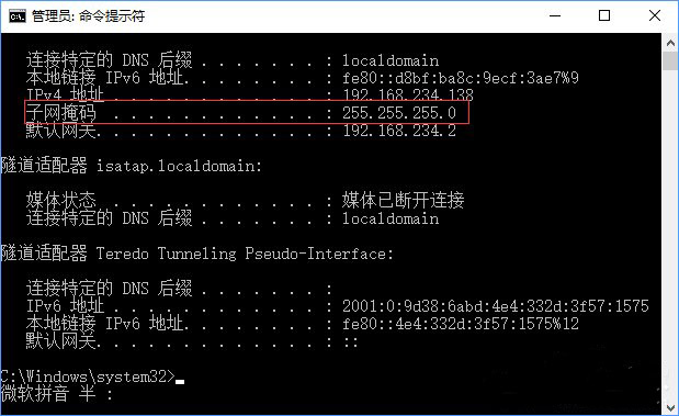 Win10查看IP地址和子網掩碼